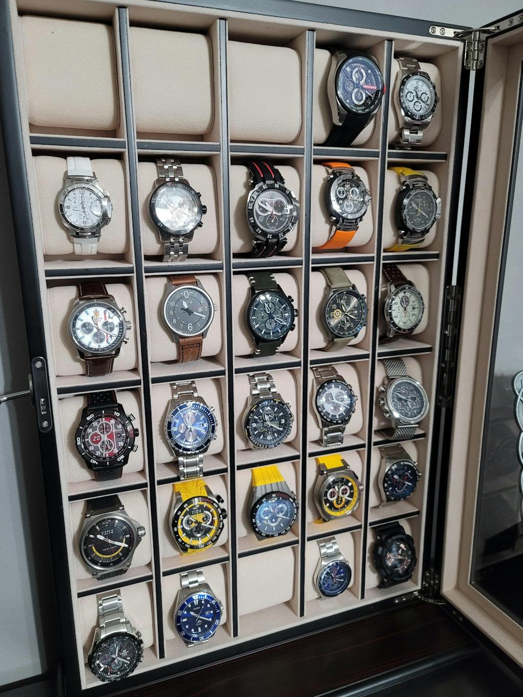 30 Slot Ebony Wood Watch Display Wall Hanging Case and Storage Organizer Box and Stand for Oversized Watches